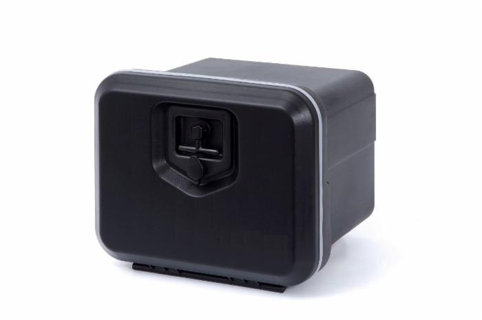 Cassetta porta attrezzi in polipropilene con serratura Europlex a cilindretto, misure 410x348x340 mm. Tenuta all'acqua e alle polveri; sistema di chiusura a compressione con la guarnizione; coperchio rinforzato; punti di fissaggio continui tra cassa e coperchio; superficie interna liscia.