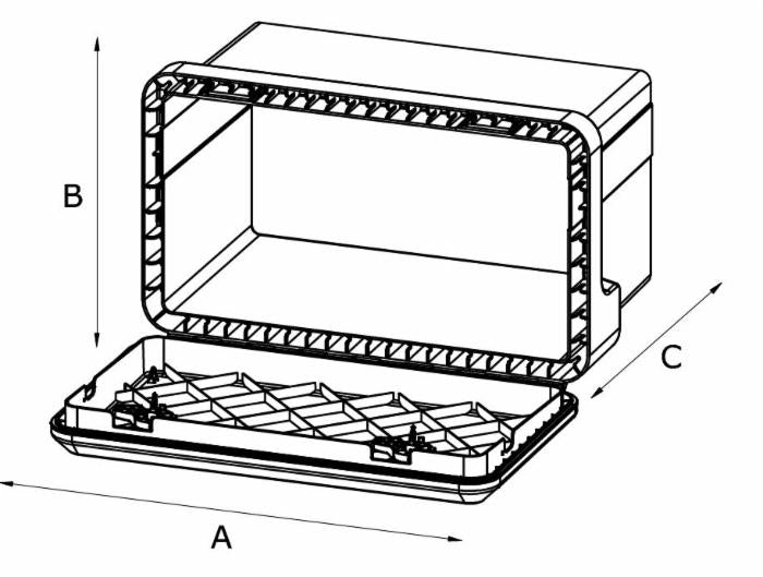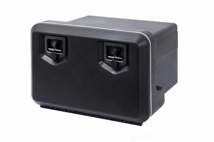 Cassetta porta attrezzi in polipropilene con serratura Europlex a cilindretto, misure 630x450x480 mm. Tenuta all'acqua e alle polveri; sistema di chiusura a compressione con la guarnizione; coperchio rinforzato; punti di fissaggio continui tra cassa e coperchio; superficie interna liscia.