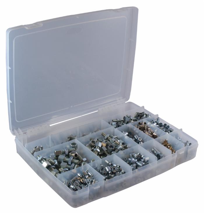 Cassetta ricambi per trasmissioni composta da: Registri per guaina 6/8/10 MA (art 00224, 00227, 00228); Terminali per guaina 5/6/8 MM (art 00051, 00052, 00216); Morsetti serraggio cavo 1-2/2,5/3-4/1,2-1,6/2,5-3/2-4 MM (art 00301, 00302, 00303, 00296, 00245, 00304); Morsetti a cavallotto 5/6 MM (art.00562, 00564).