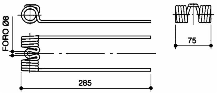 Dente per ranghinatore con filo 5,5 mm e foro 8 mm, adattabile alla produzione Bcs, Bianchi, Italo Svizzera.