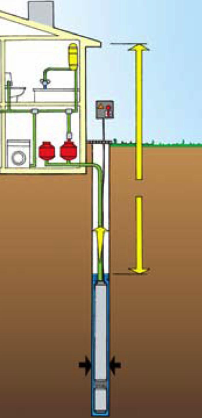 Elettropompa sommersa multistadio per pozzi o cisterne 4", in grado di pompare anche acqua miscelata ad aria
