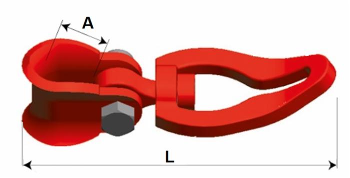 Gancio girevole fune-catena G80 per catena Ø 7/8mm lunghezza 200mm