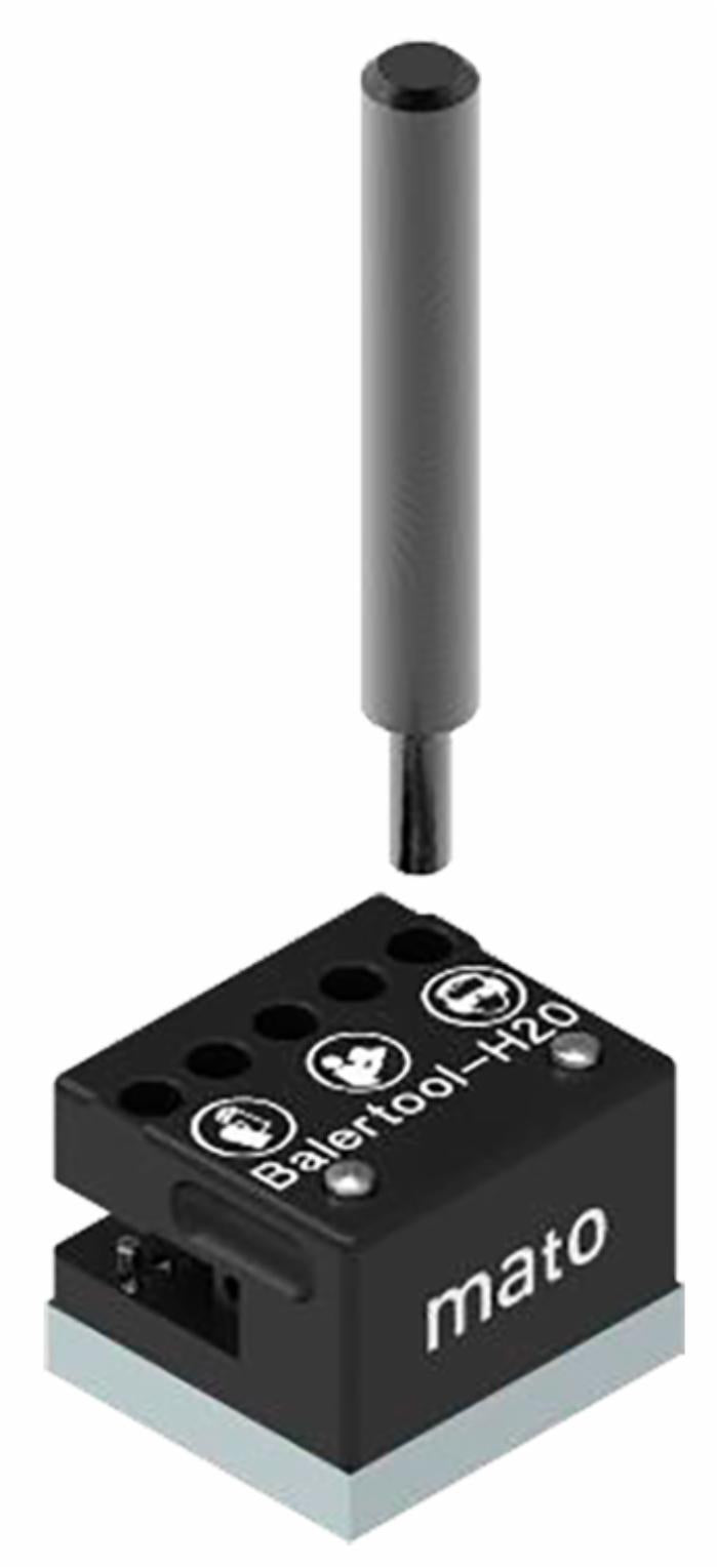 Graffatrice per graffe MATO H24 per cinghie rotopressa. Utilizzabile senza morsa; da usare su un piano di lavoro o una superficie piana e solida. Può essere usato anche direttamente sul campo.