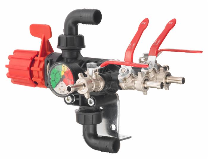 Gruppo comando a distanza GS35S per pompe a membrane a bassa pressione 4 vie, 100 lt/min, 20 bar. Completo di valvola regolazione pressione, comando bypass e manometro