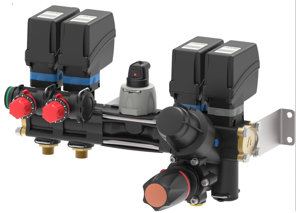 Gruppo comando composto da modulo base, flussometro WOLF e 2 valvole di sezione, 40 BAR. Si distingue per le ridotte dimensioni, materiali ad alta resistenza, notevole portata ad alte prestazioni di servizio.
