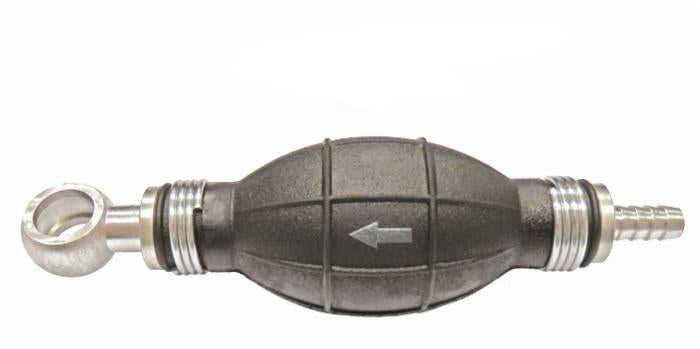 Pompetta adescatore manuale gasolio Ø8 e diametro occhiello Ø14. Flusso da occhio a raccordo dritto