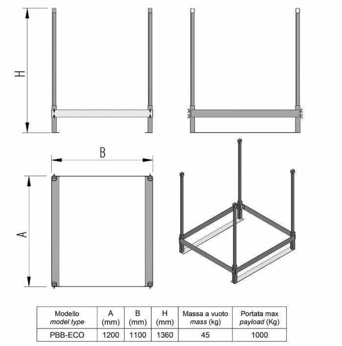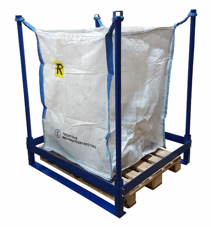 Struttura porta big bag in acciaio al carbonio elettro-saldato, ottimizzata per applicazioni leggere. É ideale per lo stoccaggio momentaneo dei sacchi big bag fino a 1000 litri. Al di sotto può essere inserito un pallet di sostegno.