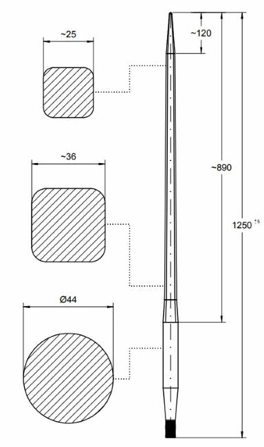 Punta filettata per caricamento frontale ø 42mm lunghezza 1250mm