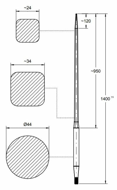 Punta filettata per caricamento frontale ø 42mm lunghezza 1400mm