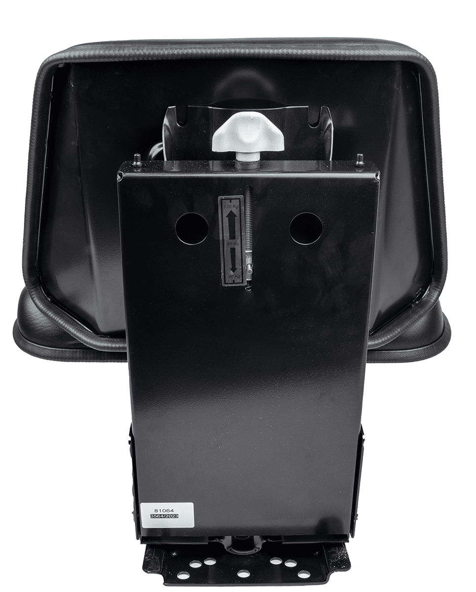 Il molleggio verticale regolabile in 5 inclinazioni consente all'operatore di personalizzare la posizione del sedile per adattarsi alle proprie preferenze e alle esigenze di comfort durante l'uso. Con una larghezza totale di 510 mm, offre ampio spazio per una seduta comoda.