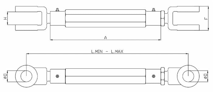 Tenditore per aratri lunghezza 400-510mm tipo lungo