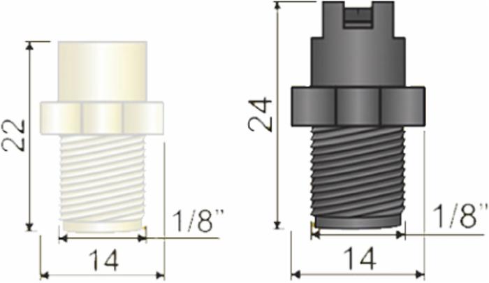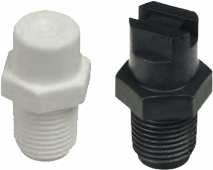 Ugelli a ventaglio 110° a cono per nebulizzazione, adatti per applicazioni industriali e per la sanificazione degli ambienti. Stampato in polimero plastico. Modello HCT con antigoccia incluso - Filetto 1/8"