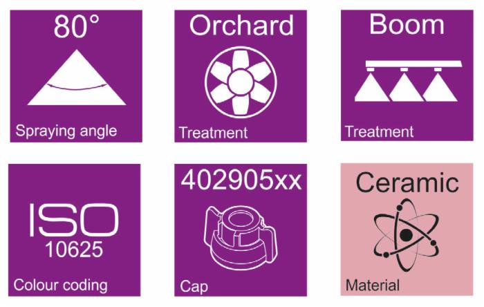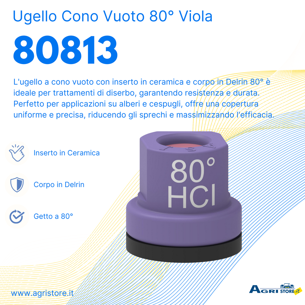 Ugello a cono vuoto con inserto in ceramica e corpo in Delrin 80° VIOLA