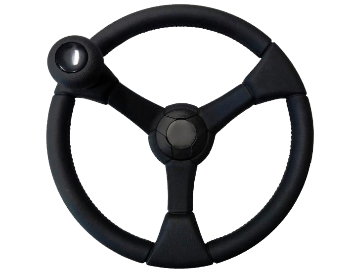 Volante in poliuretano effetto Soft Touch con diametro 350 mm, cono Danfoss 1 e pomello.