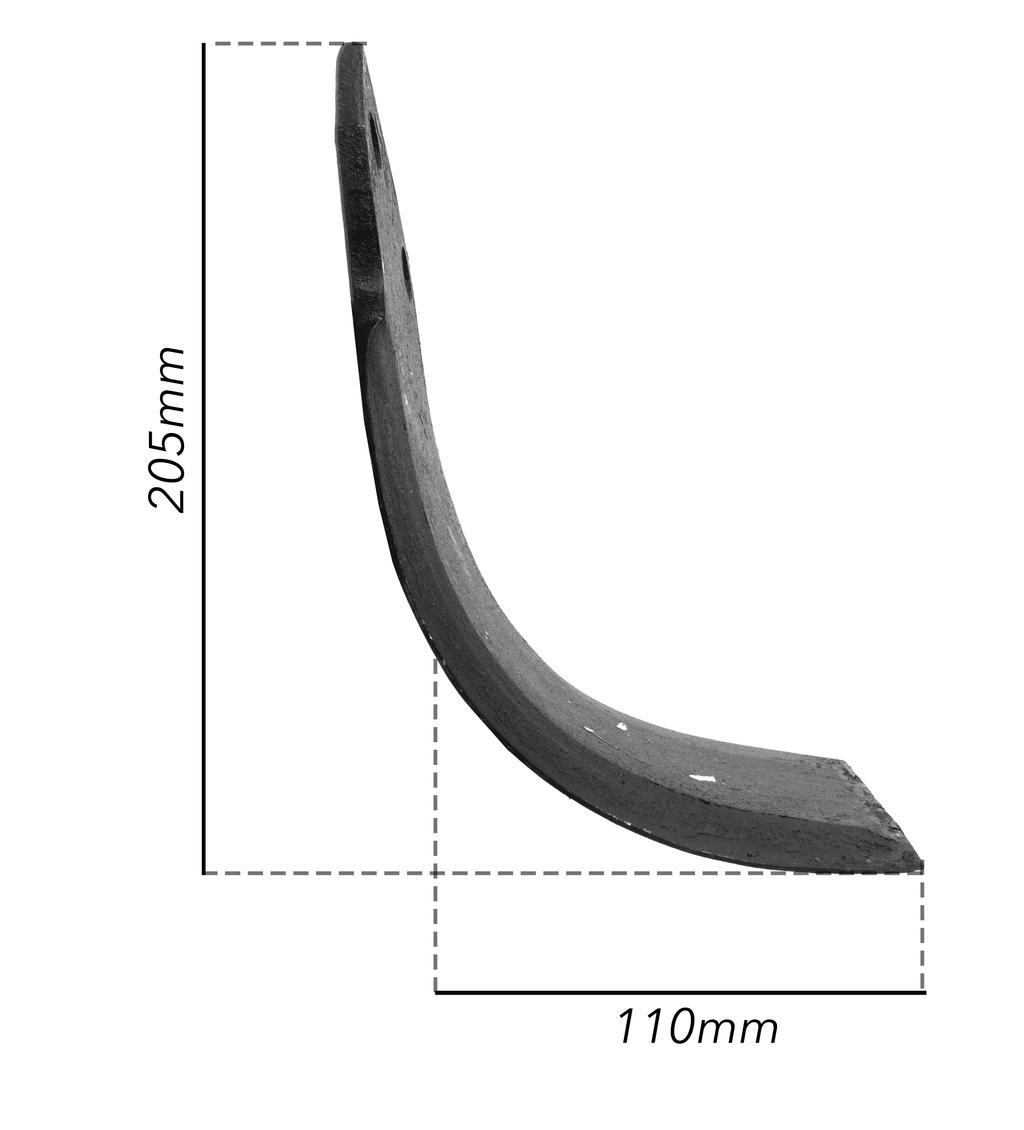 La zappa destra curva, con piatto da 80x8 mm e foro dal diametro 46 mm, è perfettamente adattabile ai marchi Dondi e Kverneland.