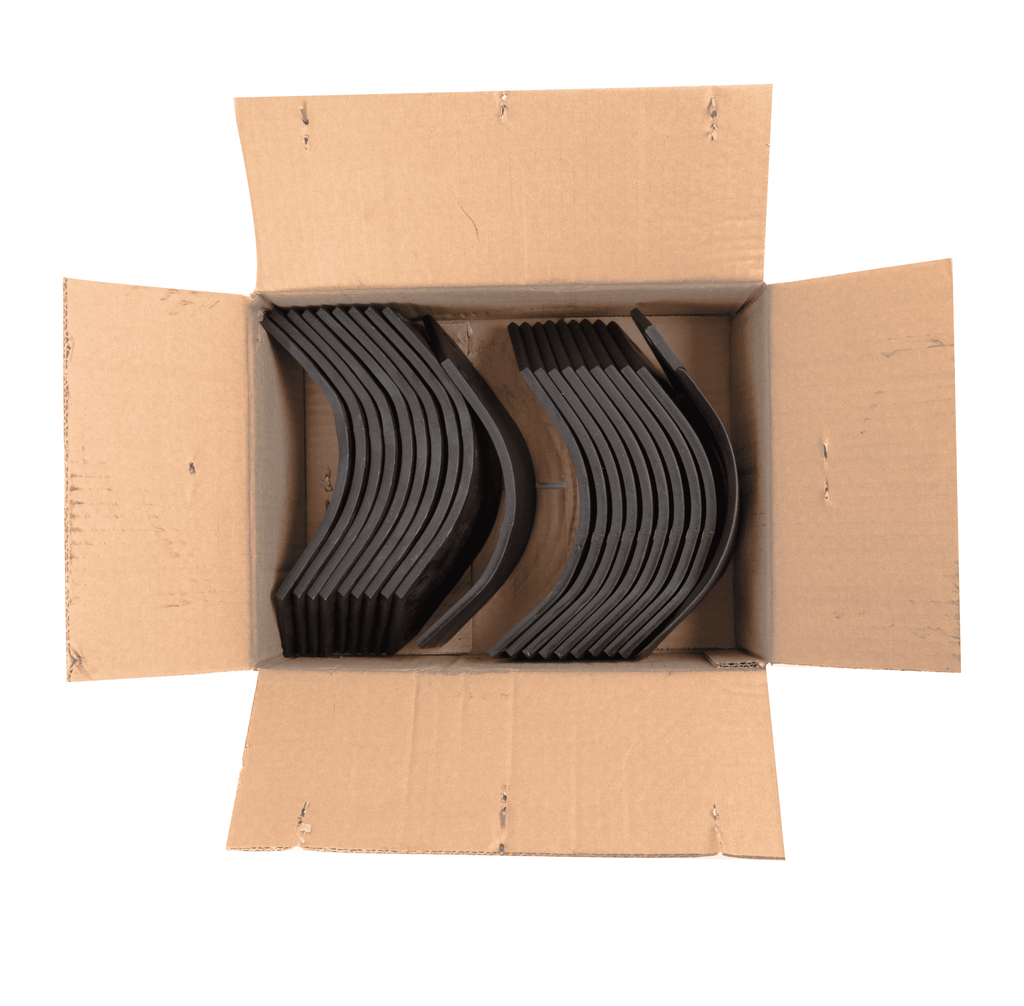 Scatola composta da 10 zappe destre e 10 zappe sinistre elicoidali con piatto 80x7 mm, lunghezza 195 mm, foro diametro di 14,5 mm. Questo modello di zappe è adattabile a frese Celli, Falc, Kverneland-Maletti, Perugini, Concept.